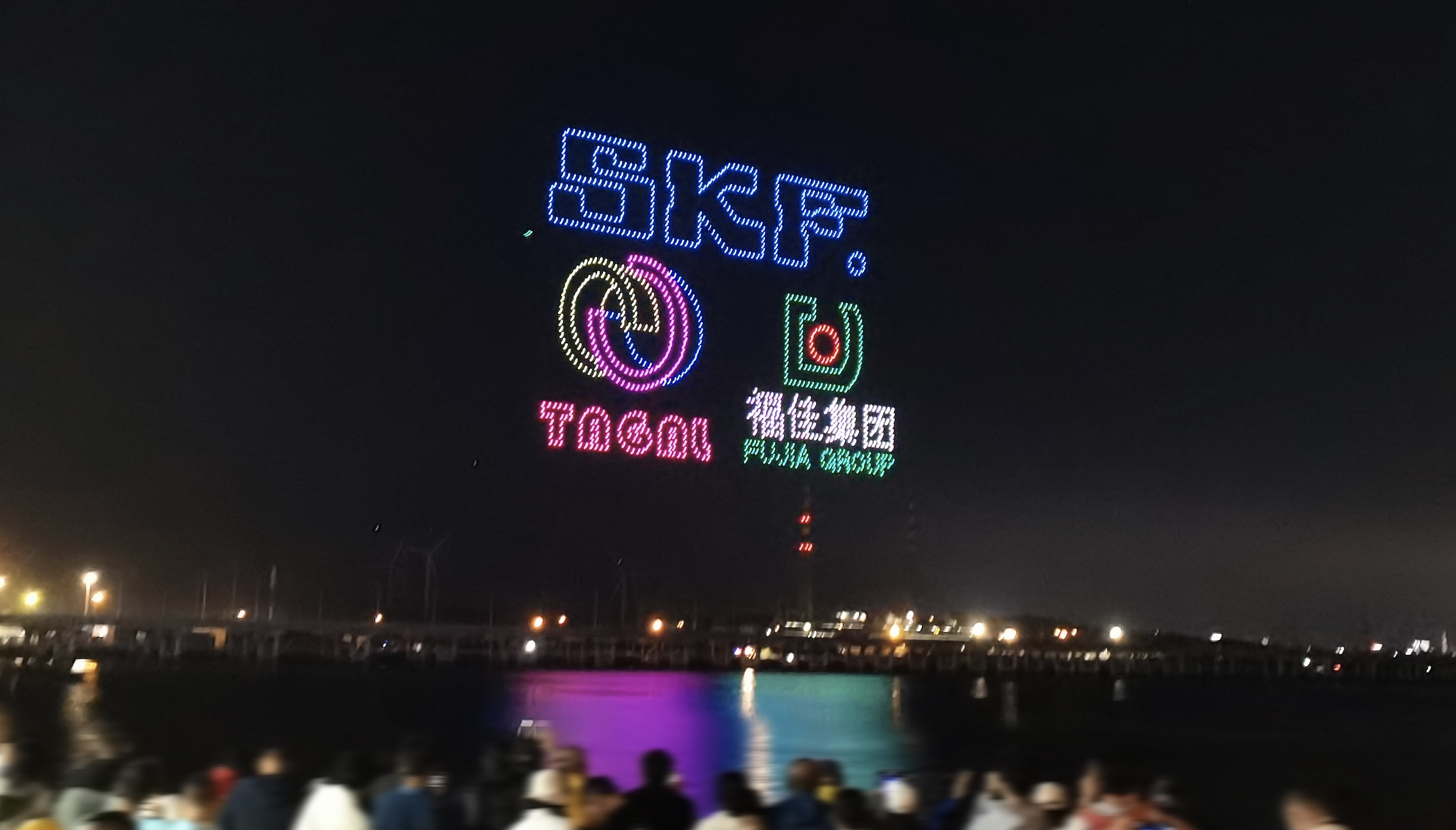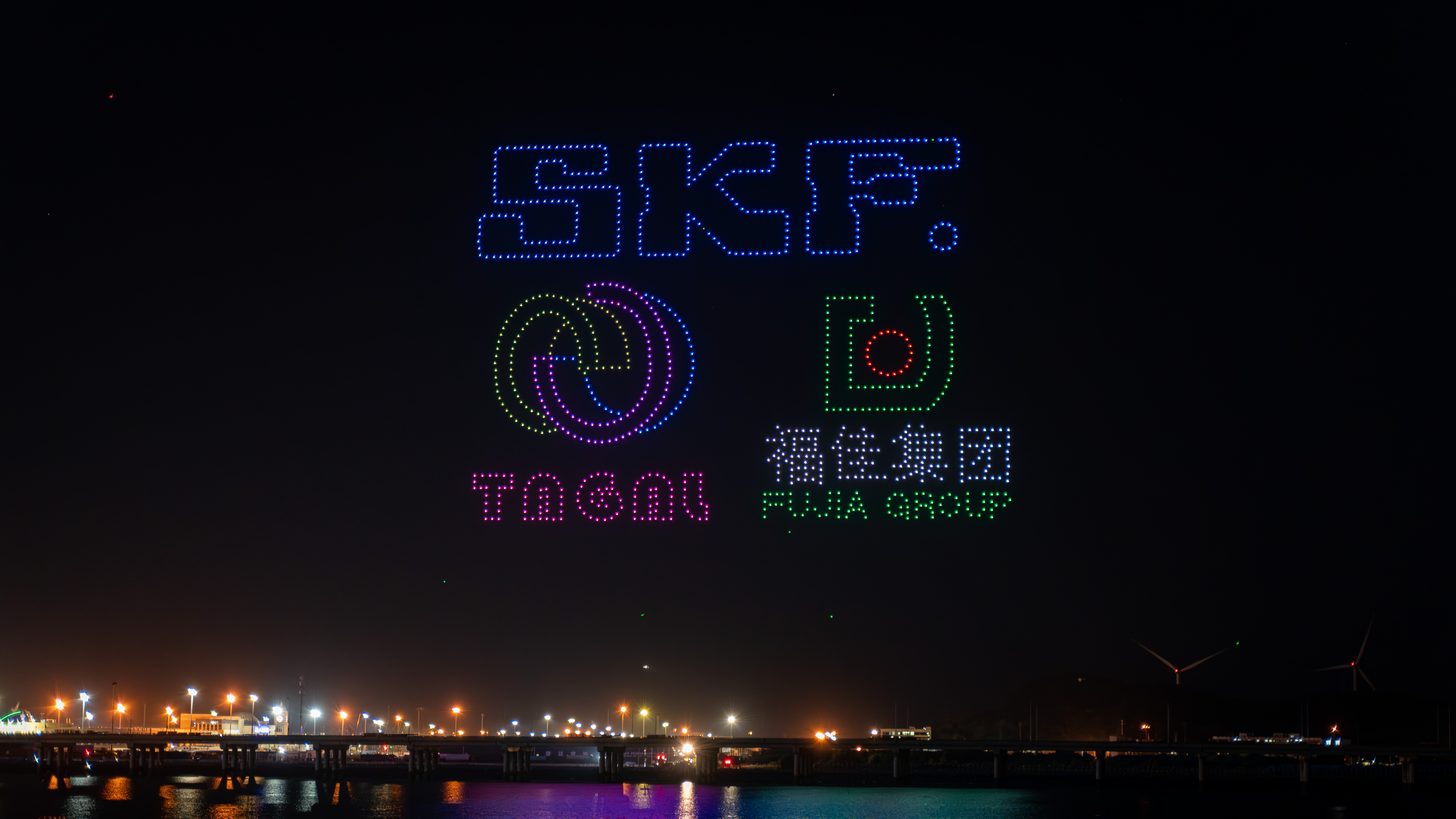 无人机表演点亮夜空,呈现出大连开发区、金普新区的发展历程,展现了这片热土的改革开放基因和创新奋进力量!