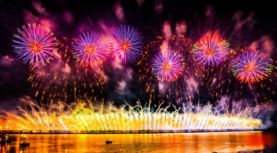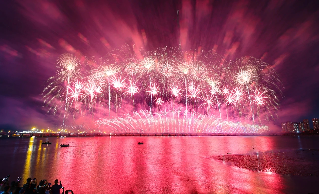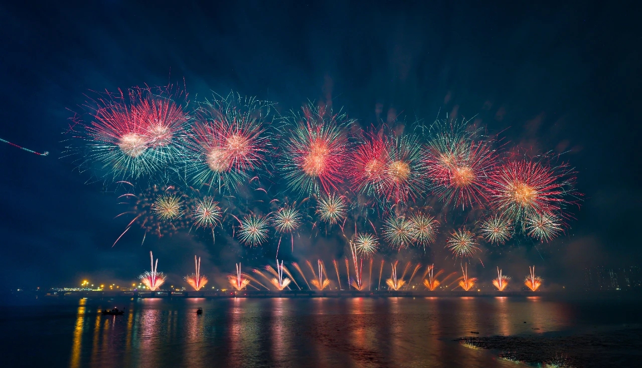 9月24日晚,大连经济技术开发区建区40周年系列活动之“华彩盛世·金普海上焰火秀”在振连路跨海大桥开发区段炫彩绽放。