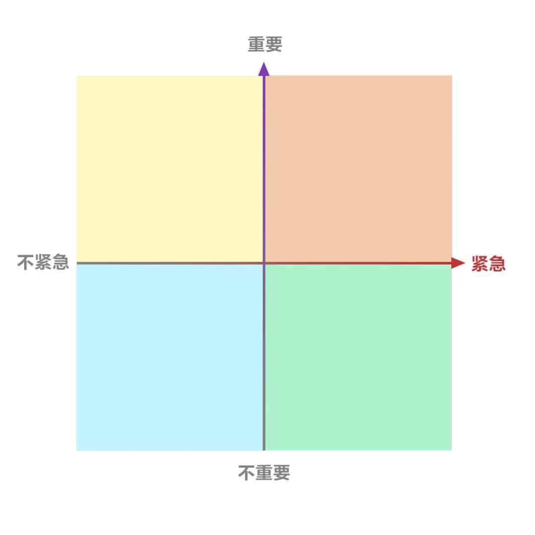 当重要的工作开始之前,可以尝试画一个四象限数轴,x轴是“紧急”,y轴为“重要”,将事情划分为“紧急且重要”“重要但不紧急”“紧急但不重要”“不紧急也不重要”四类。如此,你可以快速厘清什么事情可以占用你的核心精力。