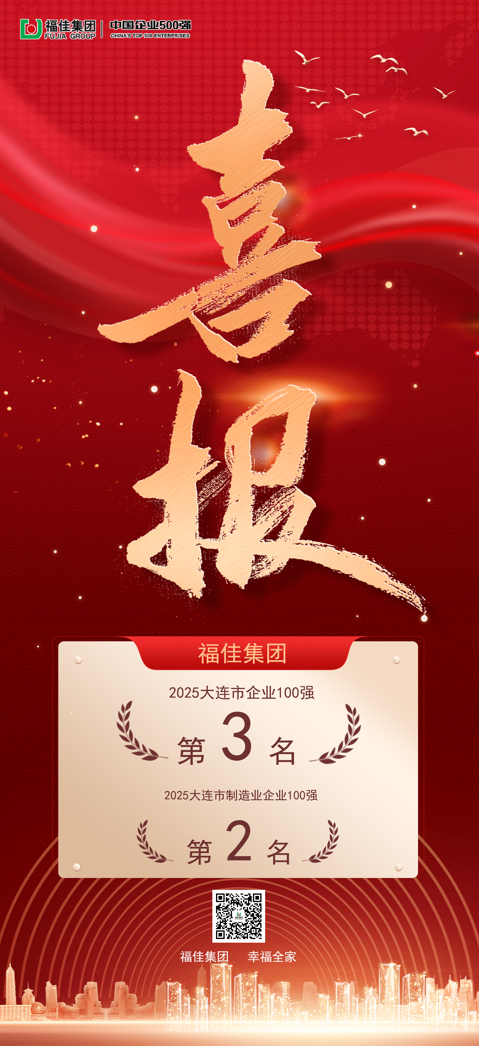 喜报丨福佳集团荣获2025大连市企业100强第3名!|福佳集团-凯发娱乐